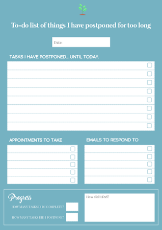 Add all the tasks you have postponed to this to-do list and get them ticked one after the other.